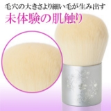 繊細なやわらかさの中にコシがあるので、従来の人工毛よりパウダーをより均一にムラなくのせることができるため、メイクの仕上がりが格段にアップします。