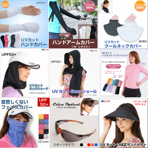顔、デコルテ、頭、手、腕を有害な紫外線から守るUVカット率98%以上の商品がいっぱい!