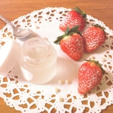 原料の白いちごは、環境保全と安全性を追求した、宮城県山元町のハイテク農場で、育苗~栽培~収穫過程まですべて自社で管理しています。白いちごは、熟しても、ほんのりピンク。ビタミンⅭとポリフェノールを含んでいます。