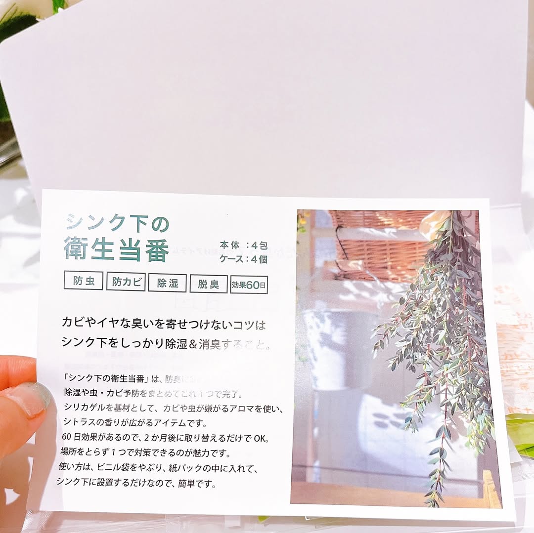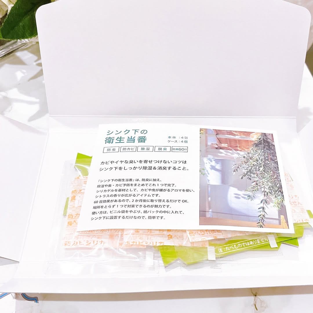 「シンク下の衛生当番」は、置くだけでシンク下の除湿・防カビ・防虫・消臭に役立つ便利アイテム。基材となるシリカゲルによる除湿に加え、天然由来の香りの力でカビや虫を遠ざけます。コンパクトサイズで、小さなスキマでも設置できます。シンク下のこもった臭いや下水臭対策にもおすすめです。約60日間(※)、さわやかなシトラスの香りが広がります。※使用環境によって異なります。