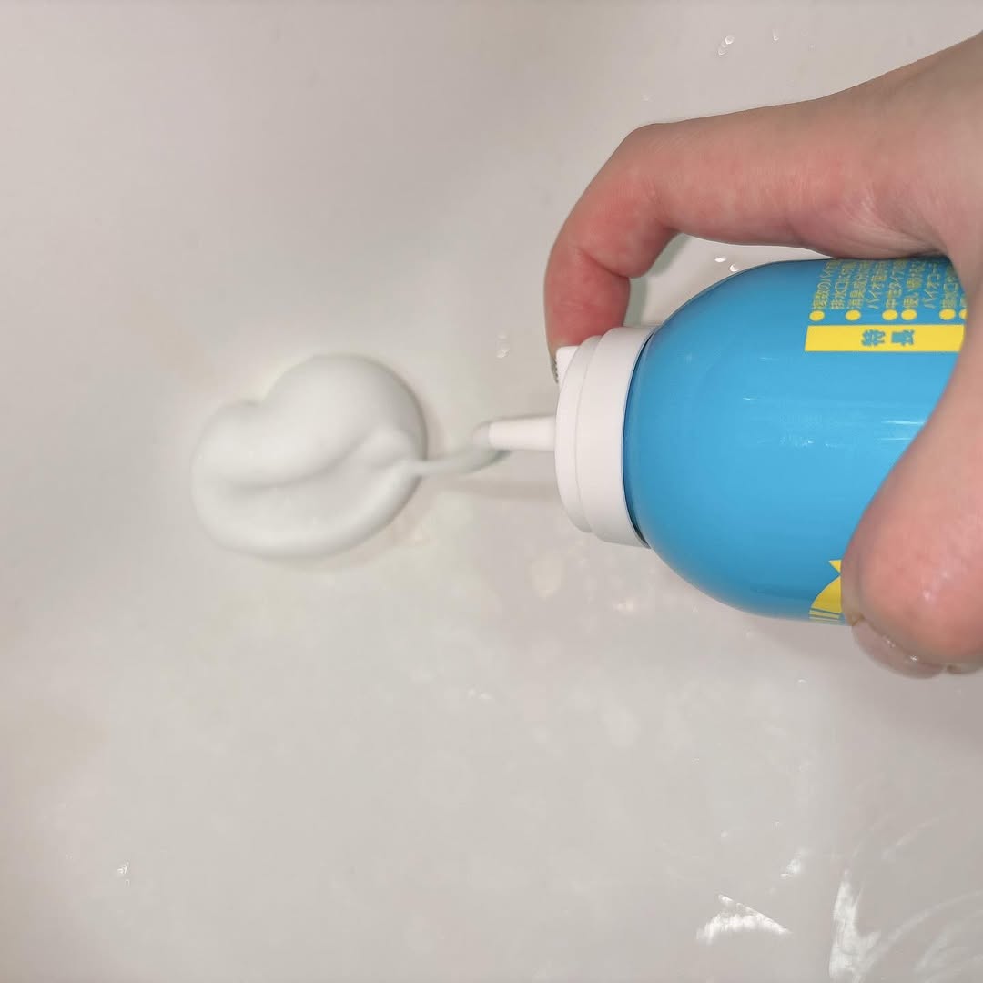 洗面台とお風呂、キッチンの水回りに使ってます!振って噴射するだけで泡がもこもこ出来て汚れと臭いを掃除してくれます☺️