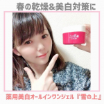 30代以上の肌の悩みに👍 年齢を感じさせない素肌…使うほどに若々しい印象へ😍 プレミアムショッピング 薬用美白オールインワンジェル『雪の上』 のご紹介です❄️ これ一つで6つの役割を果たしてくれるので、洗顔後には時短で楽して美白になれちゃいます💗 肌の健やかさを保つ為、 肌本来のバリア機能をサポートし、メラニンの生成を抑え、しみ、そばかすを防いでくれる大人の為のオールインワンジェル✨ 化粧水、乳液、美容液、美白化粧水、美白乳液、美白美容液 の役割を果たしてくれて、美白しながらハリ・つやを与え しっかりと長時間潤いが続いてくれるので、透明感も出てきます❄️💫 透明感があってプルプルのジェルは浸透力が抜群🙌 清潔に使えるようにスパチュラも付いています✨ 特許技術(三相乳化法)により、 肌のすみずみに1秒で浸透、高保湿が長時間持続するため、 乾燥による小ジワを目立たなくさせてくれるみたい💡 念願の潤ってた肌だけでなく、美白と美肌を同時に叶えてくれます☺️ 更に、 キメの整った明るい肌へ導いてくれる#フラバンジェノール メラニンの生成を抑制してくれる美白有効成分#アルブチン も配合されています😍 効能評価試験済みで、朝も夜も気持ちよく使えるので… 紫外線量が増えてくるこれからの季節に、 2020/03/23