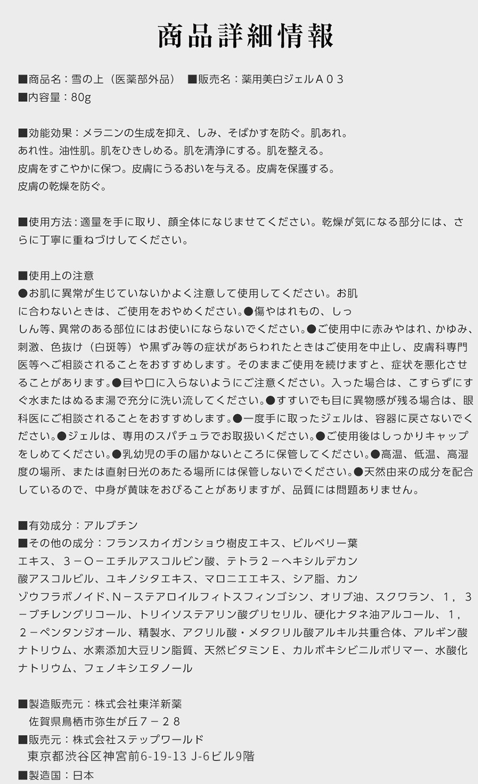皆様はじめまして。株式会社ステップワールドと申します。飲むセラミドパウダーサプリ「潤姫桃子」、薬用オールインワンジェル「雪の上」をはじめ、キレイを健康を応援する美容・健康関連商品の開発・販売、公式ショッピングサイト“プレミアムショッピング”の運営を行っています。これからも“安心・安全・高品質”で美味しく楽しい商品づくりを目指してまいります。宜しくお願いいたします!