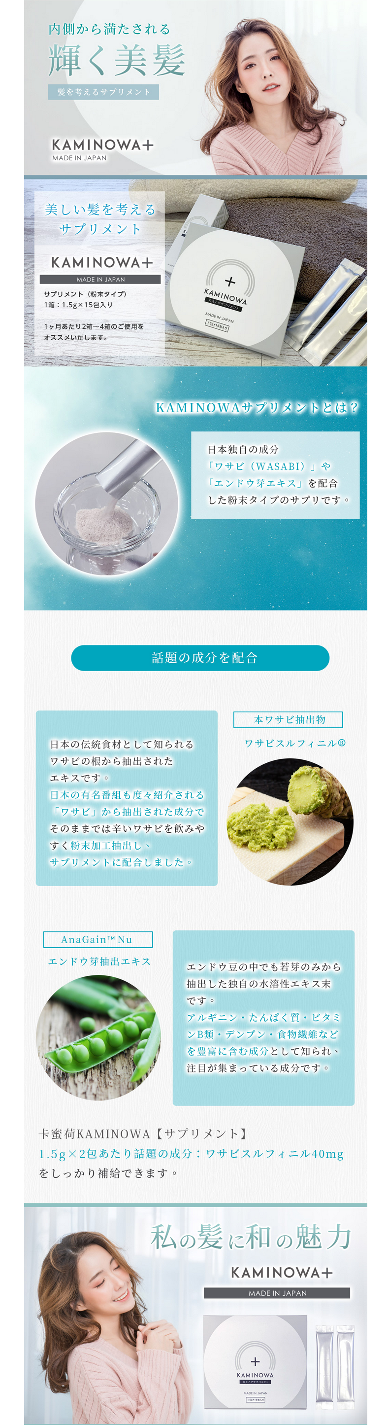 KAMINOWAサプリメント 美しい髪を考える サプリメント🩷 日本独自の成分 「ワサビ(WASABI)」や 「エンドウ芽エキス」を配合 した粉末タイプのサプリです🌿 1日1〜2袋を目安に 水または飲み物と一緒に 飲む感じ〜👍 とても甘くて飲みやすかったので 続けやすいんじゃないかなと 感じました〜😌💐 綺麗な髪の毛目指して💇♀️✨ ぜひ気になる方は覗いてみてね🕊️✨ #PR #株式会社ステップワールド #kaminowa #カミノワ #法之羽 #monipla #wpets_fan 2024/10/29