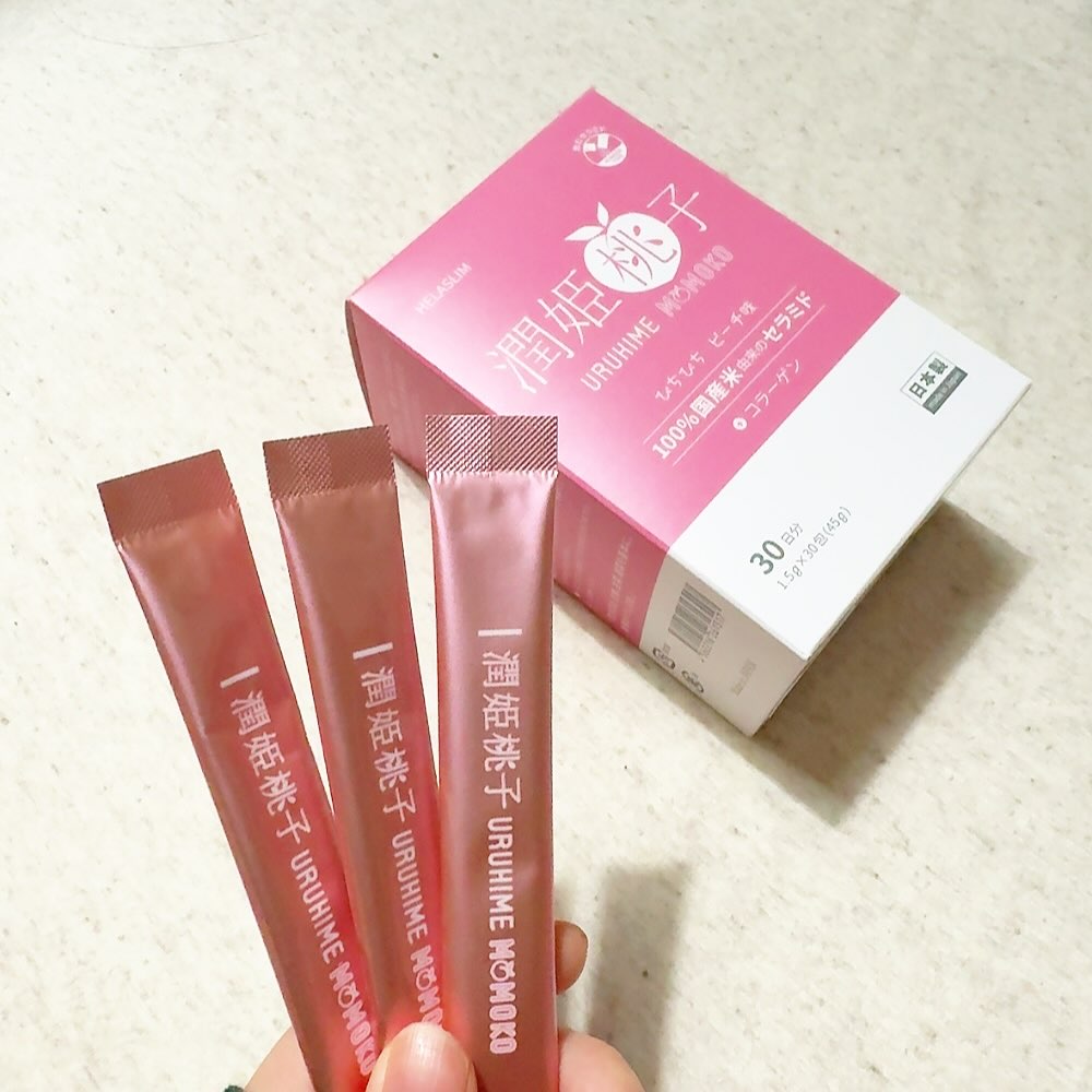 最近飲み始めたサプリメント100%国産米由来セラミド配合の『 潤姫桃子 』。