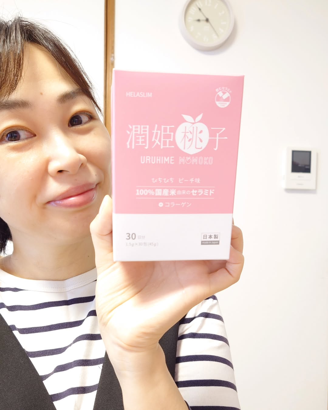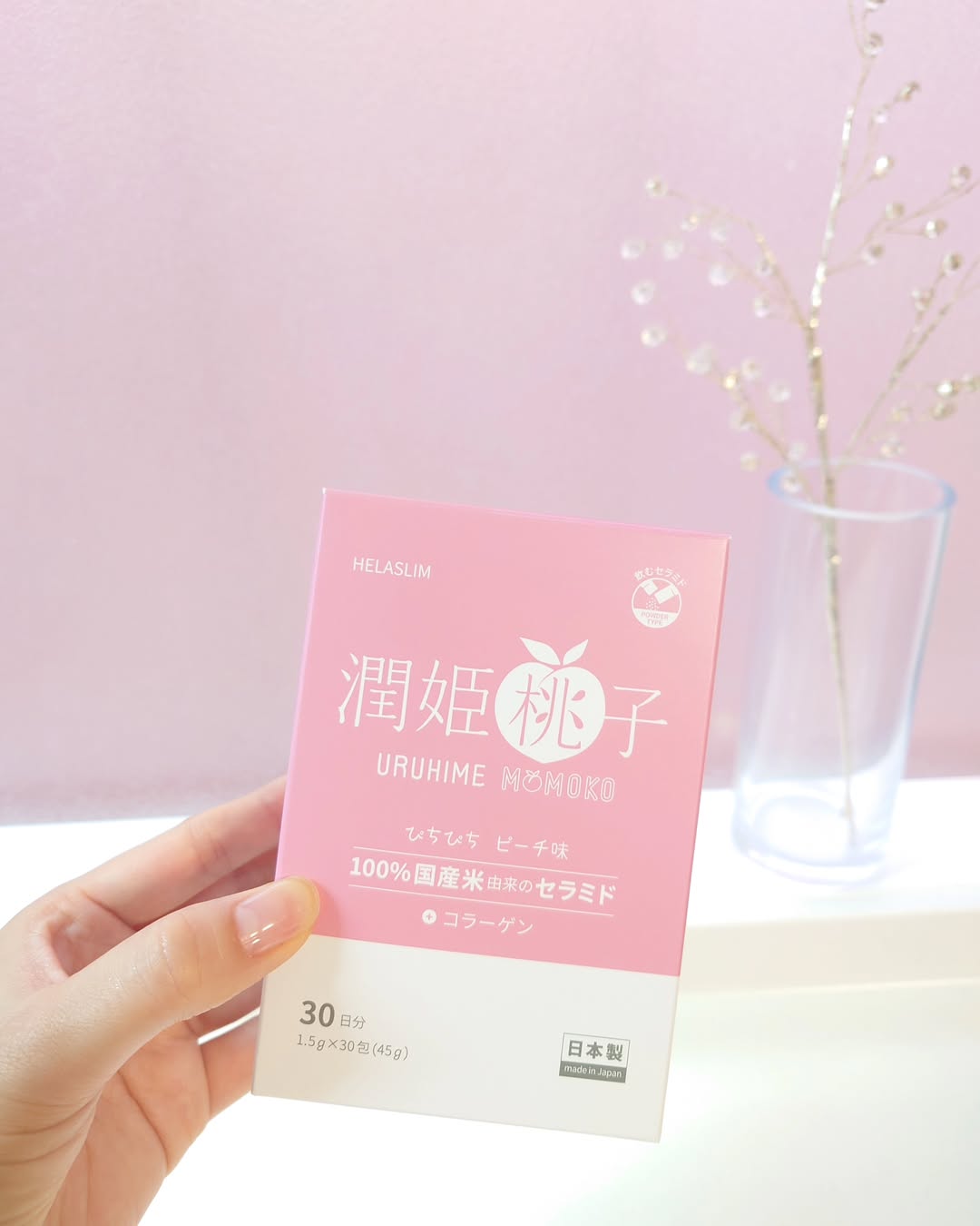 100%国産米由来のグルコシルセラミド、コラーゲン、4種のビタミンが配合されているよ✨