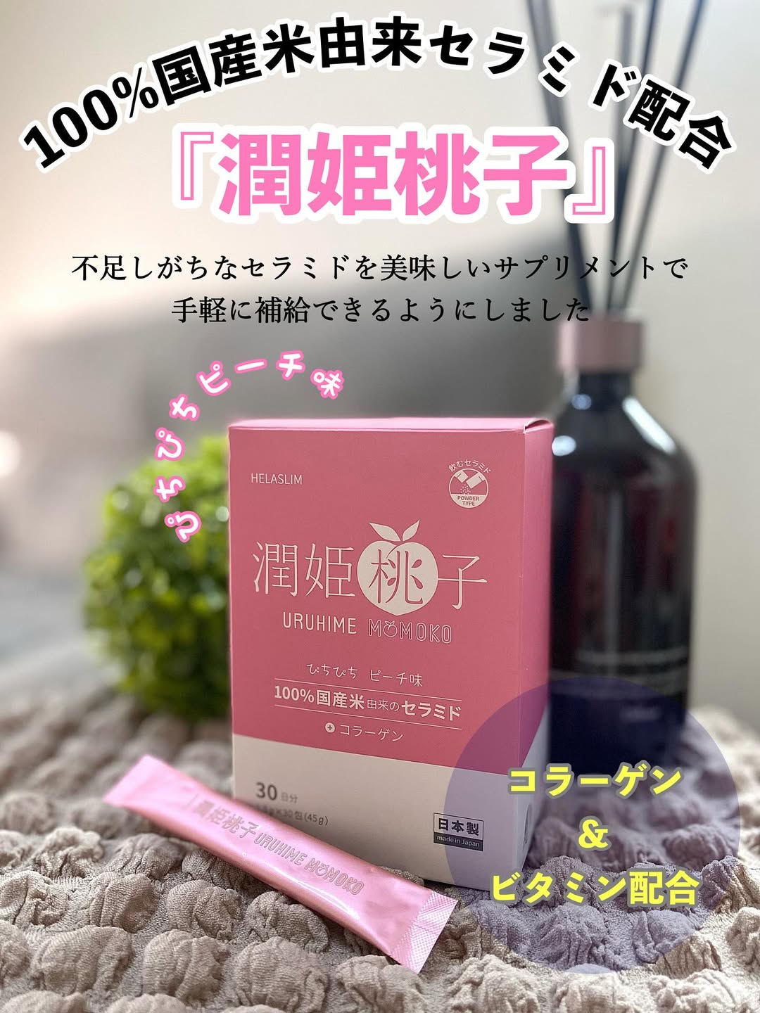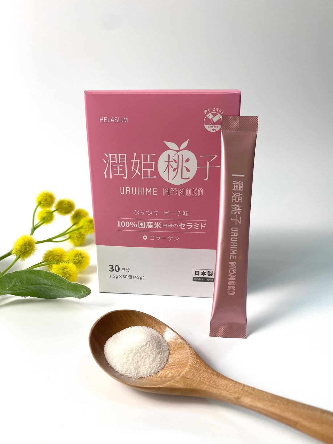 100%国産米由来のグルコシルセラミド配合。さらにコラーゲンや4種のビタミンも配合したパウダータイプのサプリメント。やさしい甘みのピーチ味。持ち運びしやすい分包スティックタイプで、いつでもどこでも気軽に楽しめるから続けやすい!1包あたり4.28Kcal