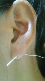 娘の為にモニター応募した「ピアフロス」が当たったので 早速娘に使ってもらいました 聞けばピアス穴を開けてこのかた ピアス穴のお掃除をした事がないそうです 和紙で出来たフロスをハーブウォーターを浸し、 ピアス穴に通してお掃除します ピアス穴はピアスを通して しっかりと確保してから通し… 2010/09/02