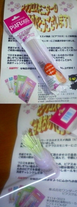 ピアスの穴、っていつもピアスをつけていないと、すぐにゴミが溜まってしまうのですよね そこを綺麗にする「こより」のようなものが登場! ピアフロスはピアスの穴を綺麗にしてくれる便利ツール! この緑色の方が硬くなっていて、ピアスの穴に入れやすくなっています 反対側の方には、ピアフロスのケー… 2010/03/25
