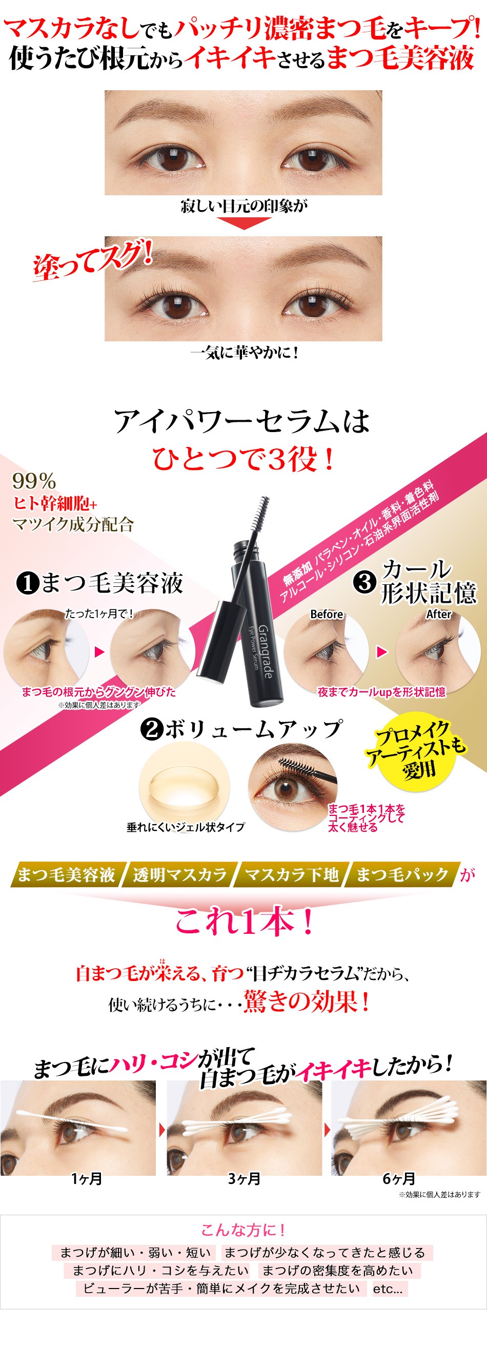まつ毛美容液+ボリュームアップ+カール形状記憶のひとつで3役!