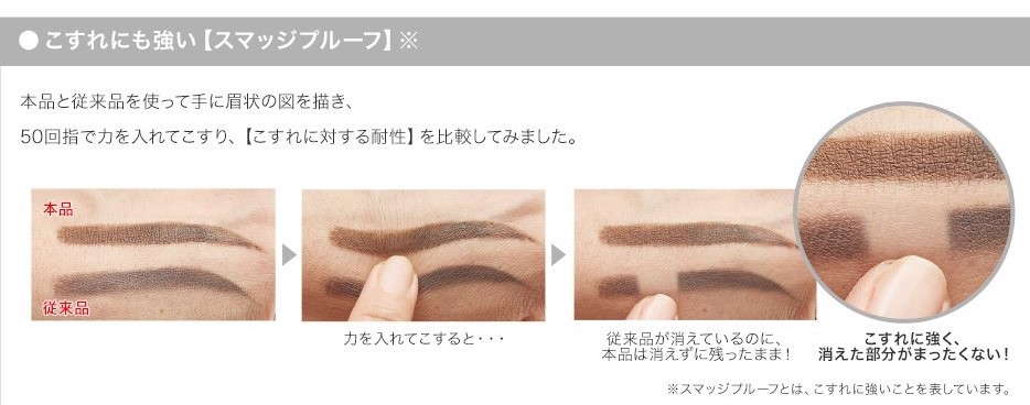 さらに、こすれにも強くこすっても落ちないアイブローが新登場!