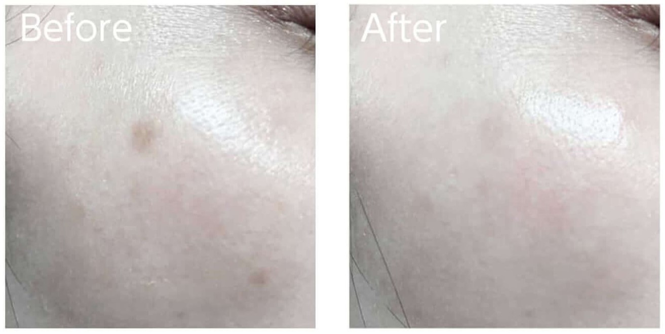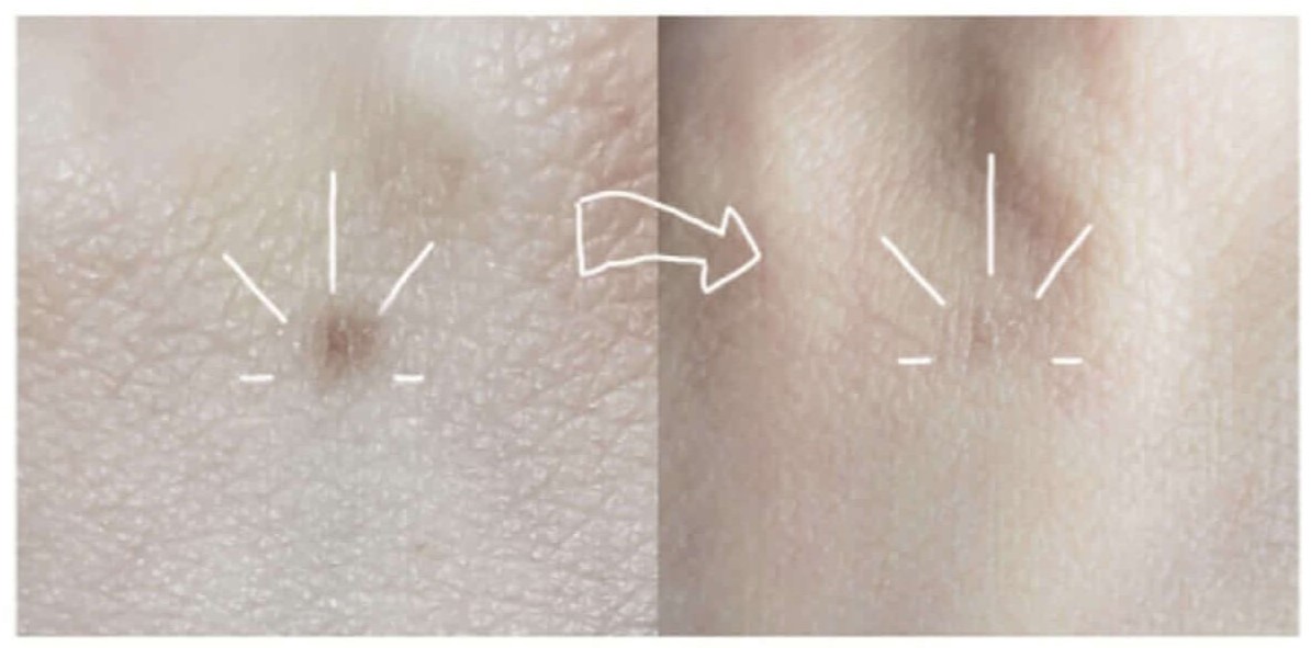 シミがどれだけ薄くなったかなどのビフォーアフターのお写真と、