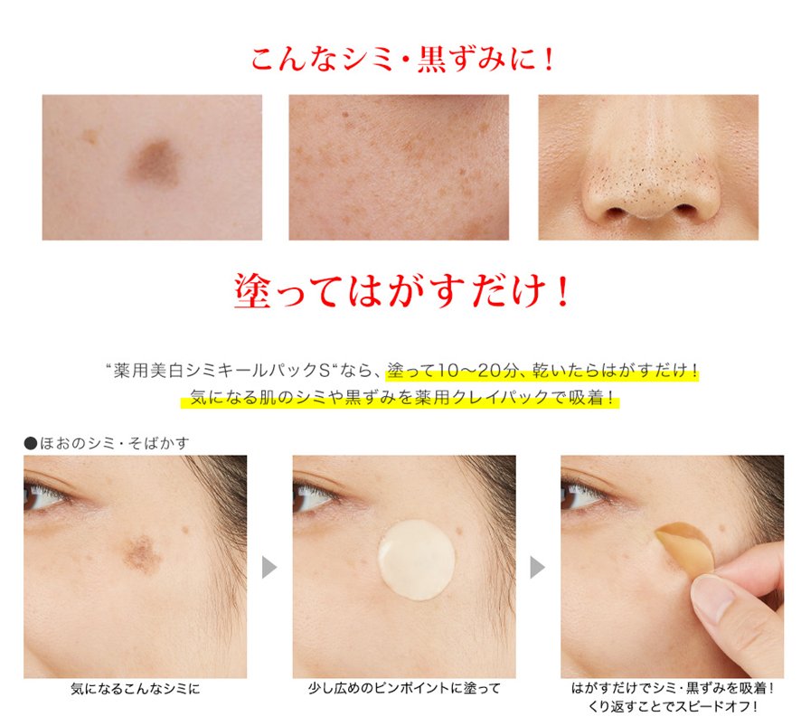 気になるシミや黒ずみに塗ってはがすだけ!シミのピンポイントケア!!