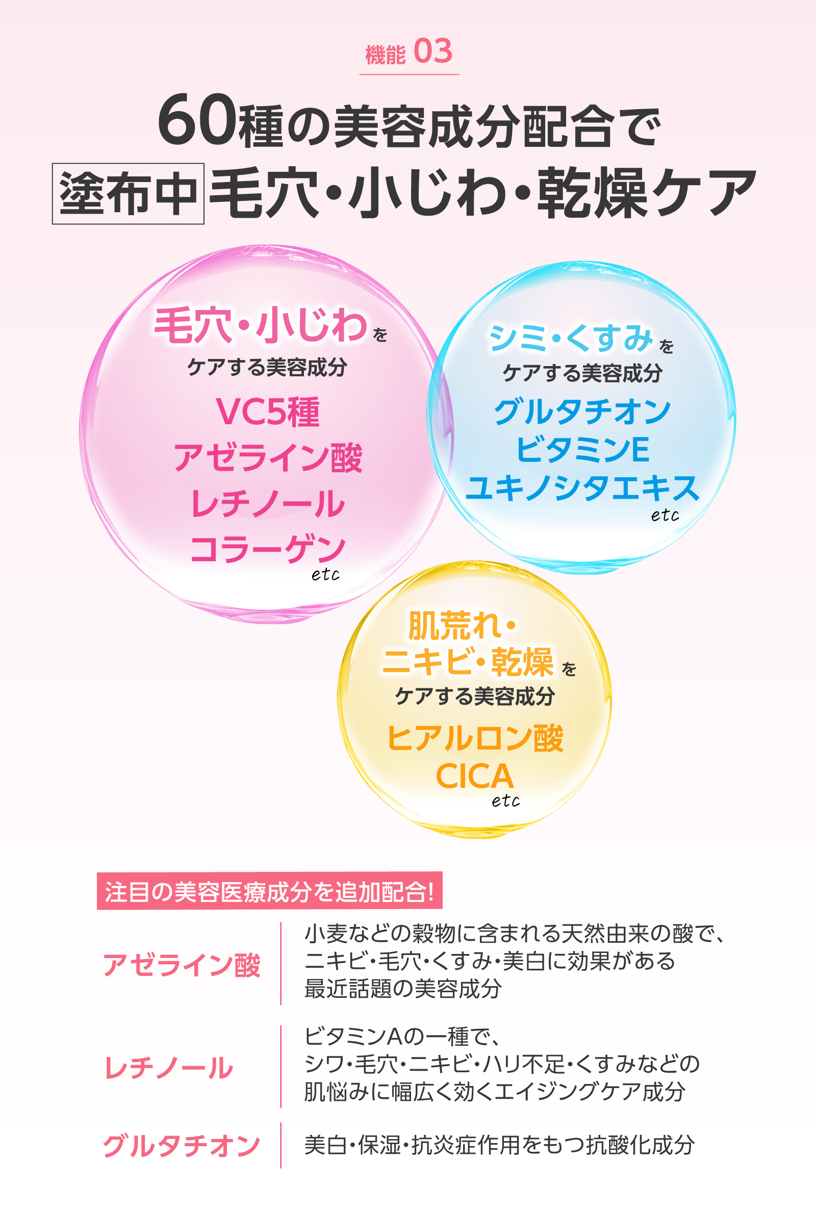 “毛穴を瞬時に消し、崩れ・テカリを1日ふせぐ化粧下地”