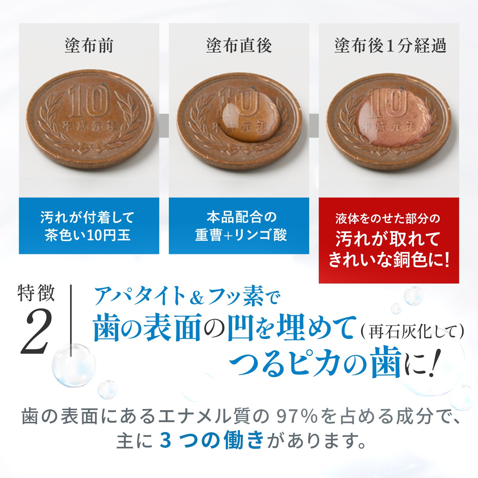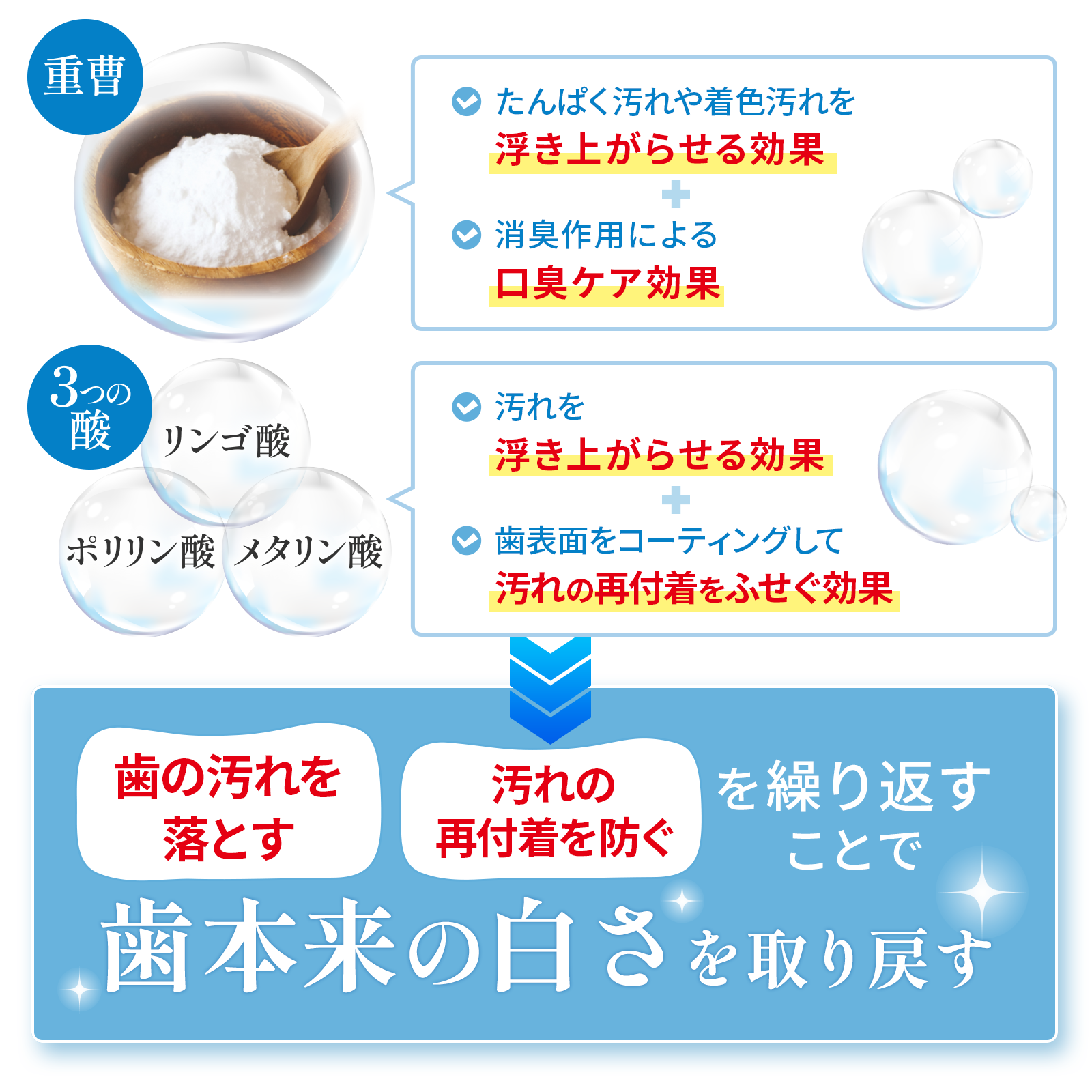 研磨剤無添加!重曹&3つの酸のパワーで