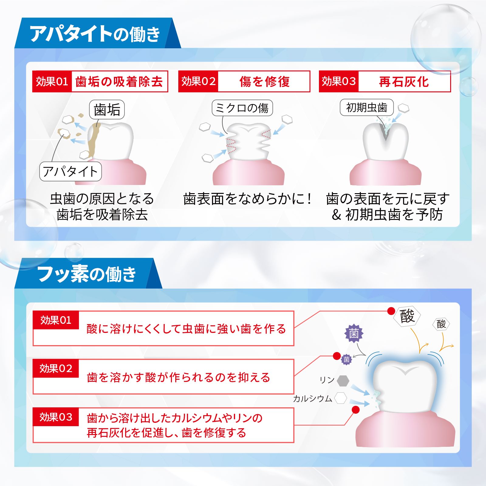 ※歯を白くする/歯肉炎の予防/虫歯を防ぐ/タバコのヤニ除去/口臭の防止