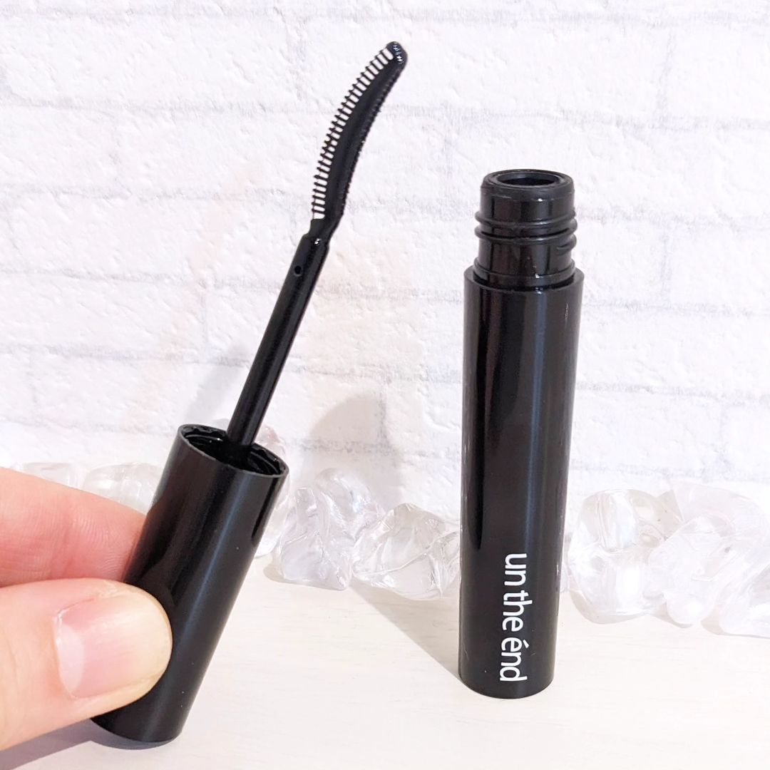 黒いマスカラタイプの容器で、蓋にブラシがついています。