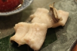 とらふぐを炭火焼きにして旨さ倍増!味付けは、韓国調味料のコチュジャンをベースにした辛味ダレと香味野菜を挟んでレモン汁で食す2種。焼肉よりもヘルシーで、とってもジューシーなプリップリの身は絶品です!初めての食感、たまらない素材のうま味を体感してください!
