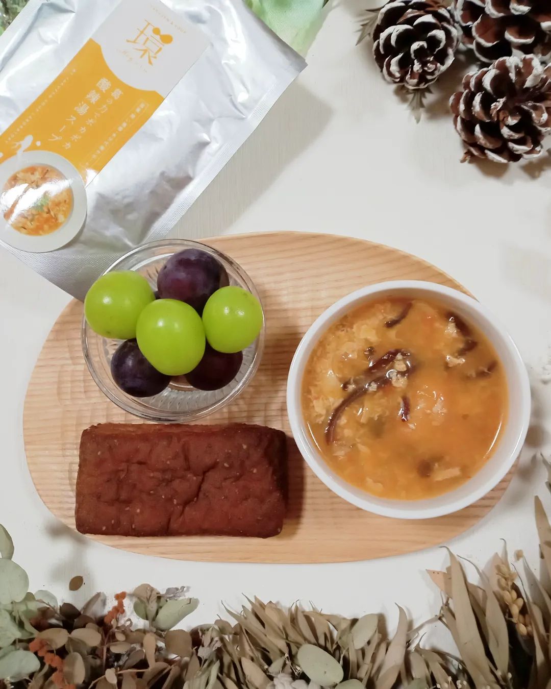 #薬膳スープ環 #薬膳 #薬膳スープ #薬膳のある暮らし #レトルトスープ #薬膳料理 #常温レトルト #レトルト食品 #おうちごはん #くっきんぐらむ #料理好き #monipla #yakuzenmeguru_fan #健康スープ #お取り寄せ @yakuzen.meguru 病みあけで何だか 身体が疲れてるなぁ~と感じていて… そんな時って酸っぱいものが食べたくなる✨ というわけで今日の朝ごはんは 酸辣湯薬膳スープ、ベースブレッドメープル ピオーネ、シャインマスカット🍇 今朝、飲んだ酸辣湯薬膳スープは 薬膳スープ環(めぐる) 6食セットの中の1つです☝ *…*…*…*…*…*…*…*…*…*…*…*…*…*…*…*….. 株式会社エルド 薬膳スープ環(めぐる)@yakuzen.meguru 通常価格:5,400円(税込) 初回限定価格:3,780円(税・送料込) *…*…*…*…*…*…*…*…*…*…*…*…*…*…*…*….. 自宅で手軽に薬膳習慣🌿 一人一人の体調に合ったレトルトスープを 受注後に手作りする薬膳スープ☕ 今回、私がチョイスしたのは以下の6食🍽️ 4種豆のトマトスープ、 ココナッツミルクスープ トムヤム風、 夜市薬膳スープ、鶏の和薬膳スープ、 ハト麦薬膳ミネストローネ、酸辣湯薬膳スープ✨ それぞれラベルカラーが違って 美味しそうなスープの写真が載ってるから 食べる前からイメージしやすいです😉 6食届くので今日はどのスープを 飲もうかな~と選ぶ楽しみがあります🎶 酸辣湯薬膳スープは 具材もゴロゴロたっぷりで満足感高いです⤴️ ほんのりパクチーの風味を 感じるところもまた美味しい🥰♥ 身体がぽかぽか温まるし 健康にも美容にも良いスープって感じです✨ 飲んだあとは全身が温まるためか 身体が元気になって寒さに負けす 活動的に動けるようになるのを実感しています💪 10種類のスープから迷いに迷って 選ばなかった4種類のスープも すごく気になっています💗 どのスープも美味しそうで 期待できる効果も魅力的🥰 おうちで手軽に楽しめる 美味しい薬膳スープに興味がある方は 詳しくは以下のリンクを チェックしてみてね~😉👍 ▼ https://yakuzen-meguru.com/smp/user_data/lp_main.php