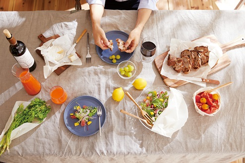 手のひらでラップを温めながら、食品やお皿の形に合わせて包むと、