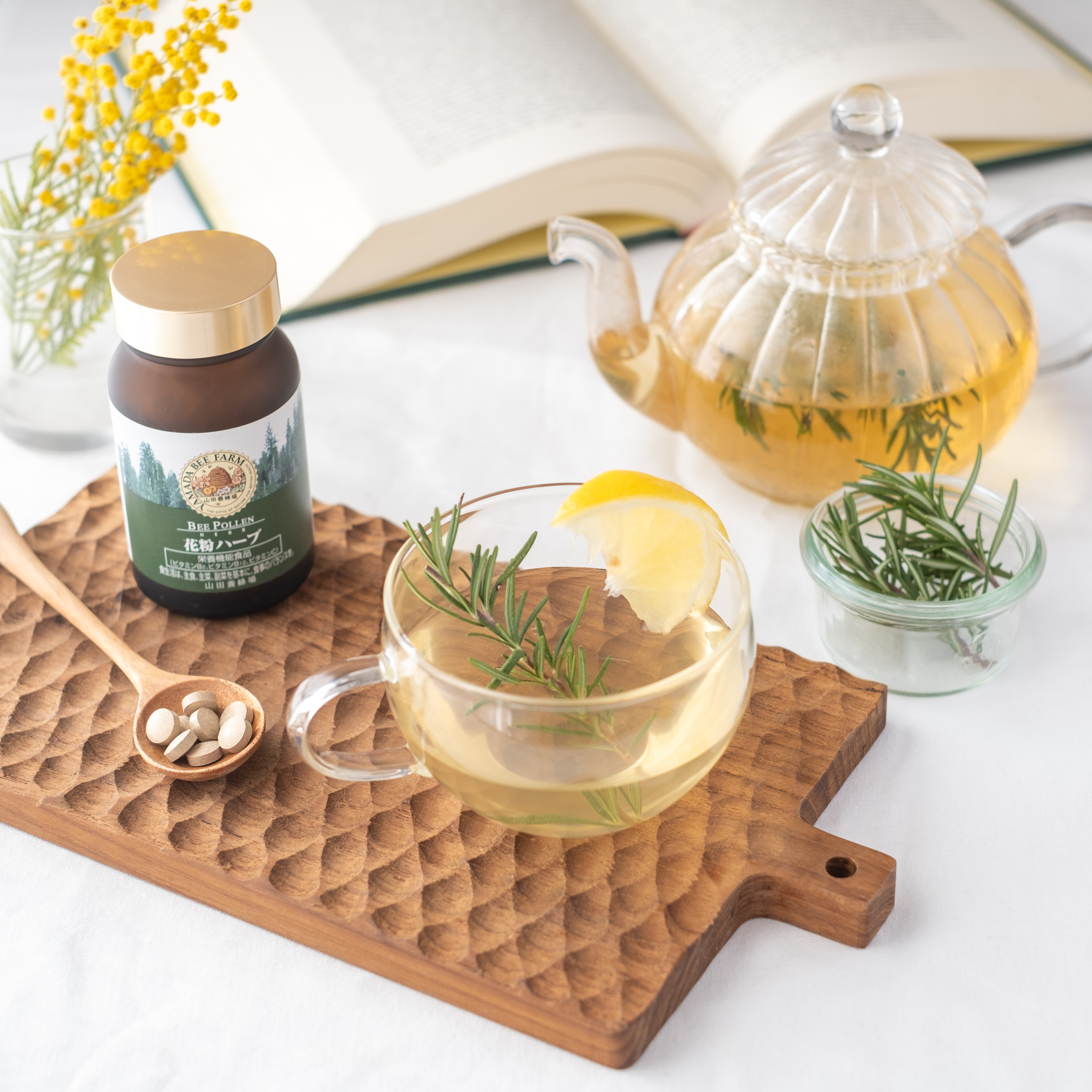 ミツバチの恵みを活用した栄養機能食品「花粉ハーブ」をご用意させていただきました。