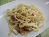 align="left"> 2012年 01月 15日 ペペロンチーノ 夜は、大庄屋様の讃岐手打ち式パスタ厨房を、指定時間の3分ちょい程茹で、ペペロンチーノに具材は、非常にシンプルに、冷蔵庫に残っていた山下屋様のオリーブ燻製手造りベーコンと、舞茸のみ ペペロンチー… 2012/01/15