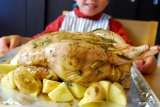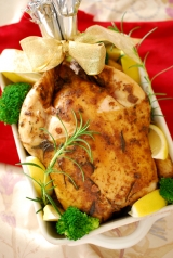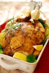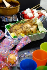 お家のオーブンでカンタンにチキンが焼けるキットです。材料(丸鶏、オリーブ油、調味料、竹串、チャップ花)はもちろん焼き方説明書、取分け方説明書付。