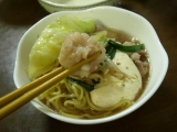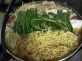 出汁は、コプチャン、キャベツ、韮、もやし、豆腐によく合います。