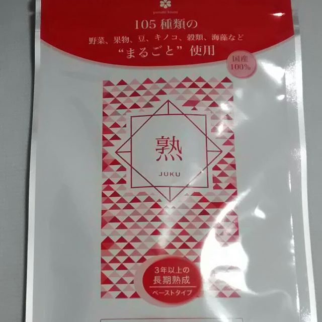 ペースト状植物発酵エキス【熟 -JUKU-】 国産100%の105種類の自然の素材(野菜、果物、豆、キノコ、穀類、海藻など)を、伝統のもと(麹菌・酵母・乳酸菌)でまるごと発酵・熟成させ、素材の持つ成分を凝縮した発酵食品。 防腐剤、人工甘味料、香料を使用していないそうで、体に優しく子供~お年寄りまで食べられる作り。 かなりねっとりしたペースト。 色は濃い茶、素材がたくさん入っているからか粒感がある見た目と舌ざわり。 香りがけっこう強く、甘みとコクもしっかりある風味。 セロリや春菊の個性的な香りが強め、今まで味わったことがない感じでした。 甘みがしっかりあるのでちょっとしたおやつ感覚で食べられてよかったです。 多くの野菜やくだものを1度に摂れ、発酵しているので健康効果も高いから嬉しい商品です。 #大和酵素 #熟 #発酵食品 #酵素 #腸活 #美容 #健康 #ずっと健康 #monipla #yamatokouso_fan