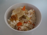 「炊きこみご飯の素(博多うまだし仕込み)」をモニターさせてもらった 国産たけのこの食感ものすごくいい でも彩りの人参がやわやわすぎて 炊き上がりに軽く混ぜたら崩れすぎたのが残念 でもおだしの味がおいしく、上品な感じ 硬めな炊き上がりも私このみ 実家に帰る前の 「食材処分祭」だったか… 2011/12/06