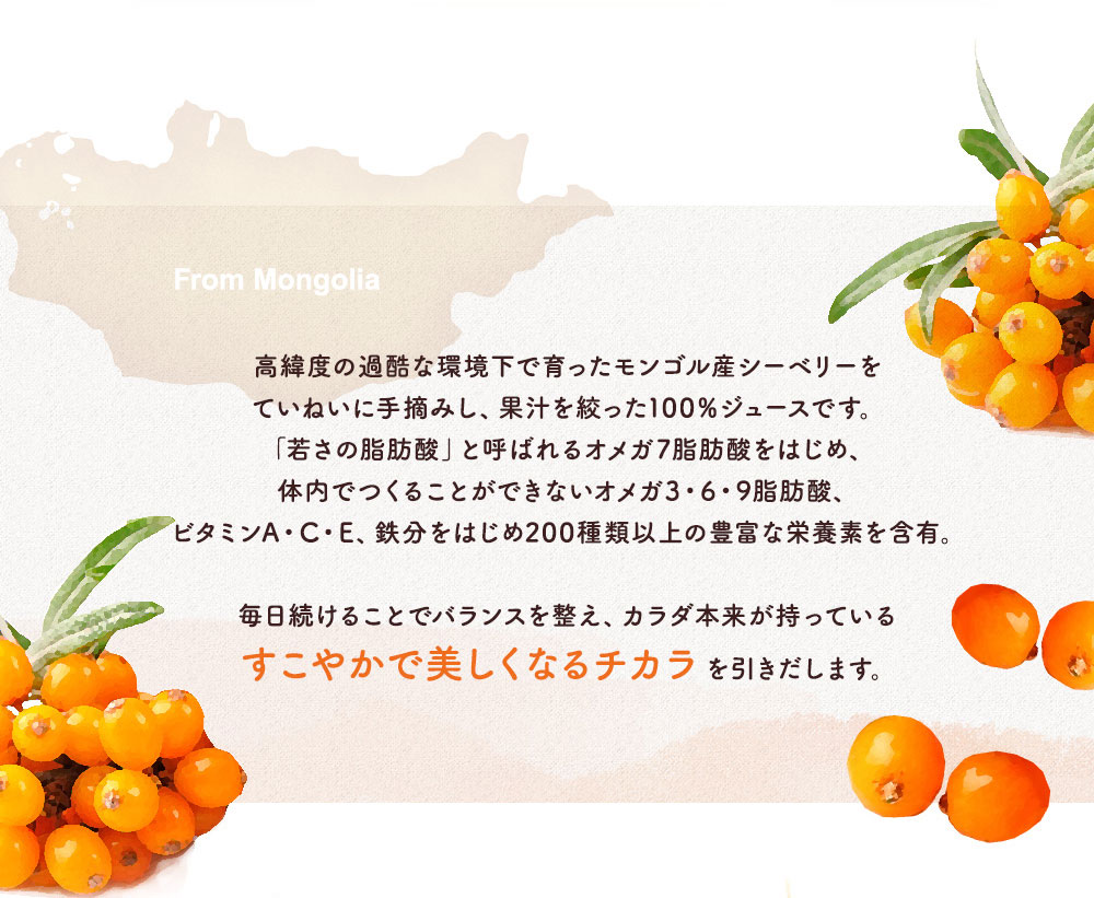 モンゴル産の最高級シーベリー(サジー)を使用した果実ジュースやスキンケアを企画・販売しております。