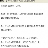 ↑モニプラで、株式会社ワイエヌケージャパンさんのプロジェクト無料RPGゲーム“ロハン”をプレイし、NET CASHをもらおう!に参加し、見事1万円分のネットキャッシュがあたりましたありがとうございました1万円分も当たるなんてびっくり!これから何を買おうか考え中です無料オンラインゲーム「R… 2009/03/26