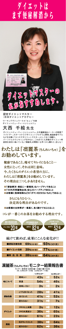 凛麗茶10日間お試しセット(さわやか本舗) を飲んでます 以前も飲んだことがありますが、 とっても飲みやすいので、 いつも飲んでるお茶の代わりに飲んでます 溜まったまんまでは、キレイになれません 身体の中からキレイになることが大切だと思います 便秘薬には抵抗がありますが、 … 2010/01/03