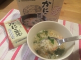 >カニ雑炊をお試し♩ 世田谷自然食品さんのフリーズドライのカニ雑炊をお試しお湯を注ぐだけでお手軽に食べられますお湯にも混ざりやすくて、スプーンでくるくると何回か混ぜるだけで完成(´∀`)♩お手軽すぎですよね味は?とーってもおいしい( ´艸`)カニの旨みがたっぷりでしたよ♩お茶碗に軽く一杯… 2015/03/16