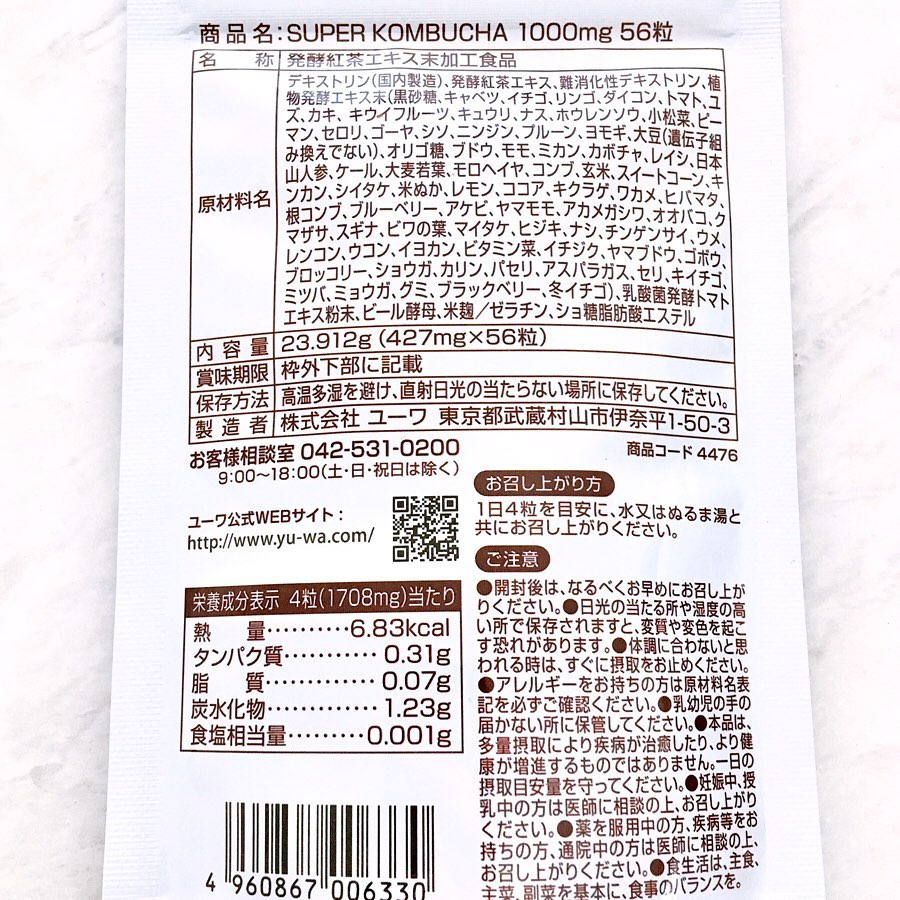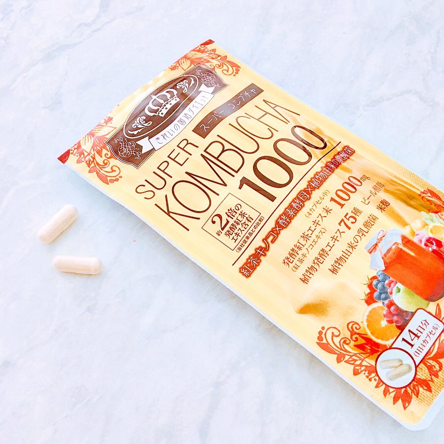 きれいの菌活ダイエット. ⭐️スーパー コンブチャ⭐️ . . 紅茶キノコ×酵素酵母×植物由来の乳酸菌💗 紅茶を発酵させた特別なダイエットケアサプリメントです✨ 4カプセルあたり、醗酵紅茶エキス1000mg、植物由来乳酸菌、75種類の果物野菜を醗酵したエキス、ビール酵母、米麹が入っている高含有タイプ🥰 菌活ダイエットがこのサプリを飲むだけで出来ちゃいます💕 タブレットは独特のニオイは無く、紅茶の香りもよく分かりません。 粒が少々大きめなので、頑張って飲み込みました! 一日4粒だけなので、これなら続けられそうです😊 お通じや肌の調子が良いなどの声があるようなので、今後の変化に期待大💕 . モニターに参加させて頂きました🌸 #モニター #モニター当選 #当選 #美容 #美容好きな人と繋がりたい #サプリ #サプリメント #スーパーコンブチャ #yuwa #ユーワ #酵素 #KOMBUCHA #菌活 #きれいになりたい #やせたい #プチ断食 #便秘解消 #monipla #yuwa_fan #monipla #yuwa_fan