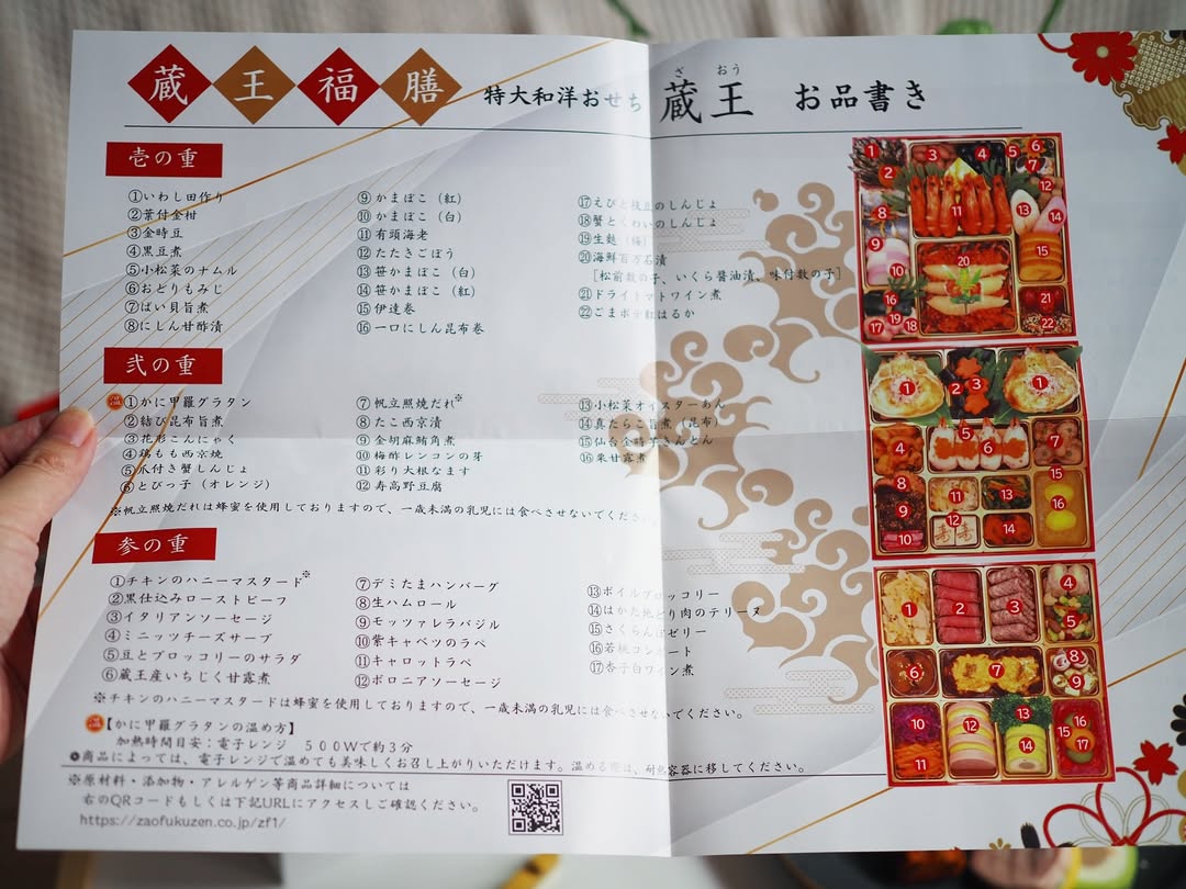 ▶当店人気No.1おせちの蔵王をおすすめ! 多くのお客様に「また来年も!」と選ばれ続ける美味しさと満足度を皆様へお届けします。 ▶圧巻の特大8.5寸和洋折衷55品! 一般的なおせち(6寸)の約1.4倍のボリュームで、ご家族4~5人でも大満足。ぎっしり詰まった豪華な内容で、新年の食卓を華やかに彩ります。 ▶美味しさと栄養のプロ集団が造るおせち料理 栄養士の知見とおせち造りの職人達による食材選定の徹底。中国産主原料不使用でご家族皆様が安心して美味しいおせちを楽しめます。 ▶美味しさと彩りの追求で華やかな食卓 和洋厳選食材 55品、伝統と革新が融合した「美味しさ」と「彩り」を徹底追及した笑顔あふれるおせち。職人たちの知恵が息づく一品一品が、感動の味わいをお届けします。