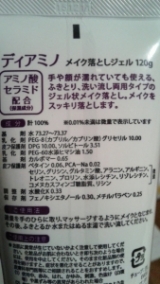 今回はメイク落としをご紹介!こちら ディアミノ メイク落としジェルです120g 1,058円 (税込)特徴無香料、無着色、無鉱物油、弱酸性、ノンアルコール濡れた手や顔に使える拭き取り、洗い流し両用アミノ酸セラミド配合ディープクレンジング成分が毛穴奥まですぐなじみ、潤い残しつつ汚れをスッキリ… 2016/03/18