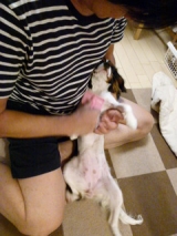 今日ゎくぅたさんのオケツの穴の周りの毛が伸びてきたかや剃ってくれたチンチンの毛も剃ってオシッコするときビチャビチャになるからね肉球も剃りたかったけど腰が痛くなっちゃったからやめた笑出産前にシャンプーもしてもらわないとね>_ 2014/09/11