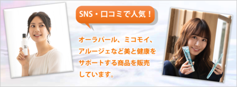 通信販売限定の【オーラパール】【ミコモイ】、健康補助食品【ヘルスメイト】のほか、口コミで人気のアルージェ、ジュレリッチの基礎化粧品のほか、美容・健康をサポートする商品を取りそろえております。