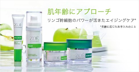 ZOEはスイス生まれのスキンケアブランド。エイジングケアで有名なリンゴ幹細胞由来成分配合のZOEが、遂に日本上陸です。
